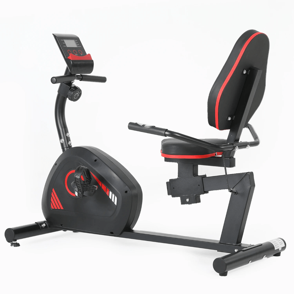 EIGHT RESISTANCE LEVELS – This stationary bike uses a magnetic resistance mechanism with 8 levels of resistance. The tension knobs control the difficulty to simulate riding on different terrains and customize your workout according to fitness level