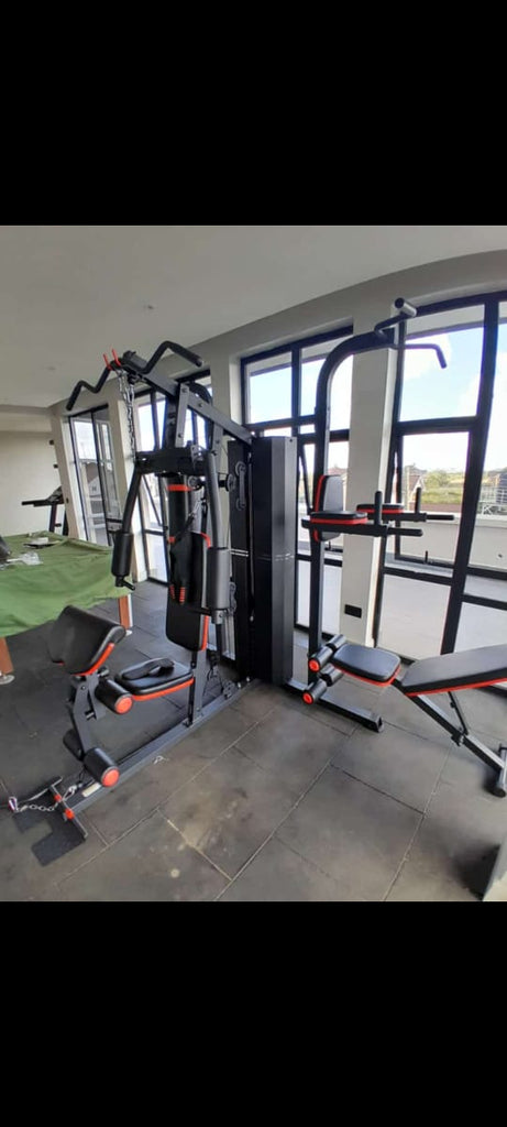 Improve your overall appearance, strength, and athletic performance with the three-station home gym. With over 20 total body strength, shape, and conditioning exercises included, you can custom build training workouts to target specific muscle areas. This compact three-station includes tricep extension, abdominal crunch, leg curl station, leg kick back, preacher curl, upright row, boxing, seated shoulder press, and so on.