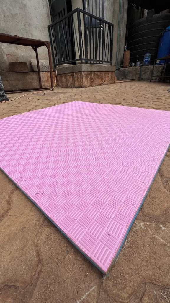 Create a safe, impact absorbing workout surface anywhere you need. The interlocking pieces assemble quickly so you can set it up easily and disassemble in no time. Dense EVA foam is perfect for home gyms, fitness studios, garages, and basements to protect floors as well as reduce noise. The comfortable, non-skid design is versatile for exercise, yoga, stretching, and children’s play areas. This mat is double color suided such that you can either go with blue or pink surface.