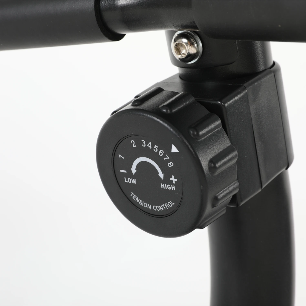 EIGHT RESISTANCE LEVELS – This stationary bike uses a magnetic resistance mechanism with 8 levels of resistance. The tension knobs control the difficulty to simulate riding on different terrains and customize your workout according to fitness level