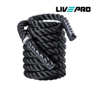 - UPGRADE NYLON PROTECTIVE COVER ON WHOLE ROPE: LIVEPRO battle ropes 50ft is covered with the nylon sleeve to protect the whole exercise rope from friction and fraying. It is constructed in a way that it will not come apart. The external cover is thick, which is more durable and will last many years of usage. This cover is nondetachable.