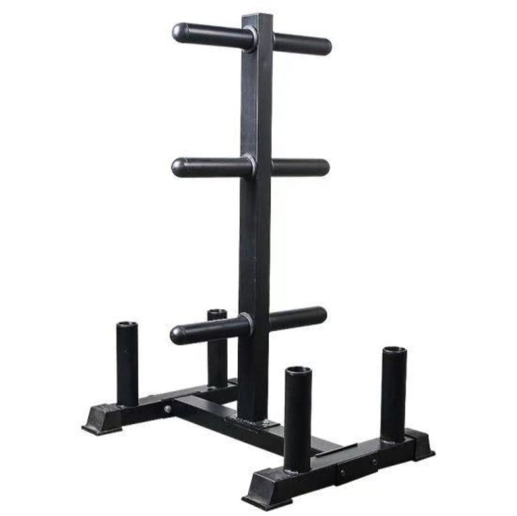 Keep your workout area safe, clean and organized with this Olympic Weight Tree & Bar Rack both for commercial or home use. Six 2" x 8" weight plate storage posts keep plates safely suspended off the floor for easy storage and removal and can hold up to 700kg of weight. Four Olympic bar holders store all styles of Olympic bars.