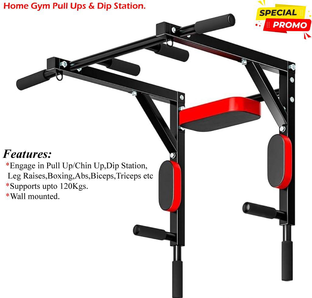 - 2-in-1 Home Gym Equipment This wall-mounted pull-up bar is designed for versatile workouts, enabling both pull-ups and dip exercises. It allows users to target different muscle groups effectively, making it an essential piece of equipment for a comprehensive home gym setup. The multifunctionality ensures a varied and efficient workout routine.
