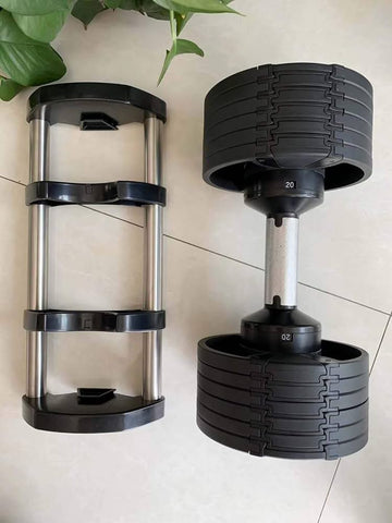 The weight of this smart dumbbell is adjustable from 2-24KG, Just by twisting the handle, you can easily adjust the weight of the dumbbell; and, whether it is a man or a woman, you can easily master the training difficulty